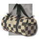 Elegant and timeless design for your duffle bag. Beige and dark checkered pattern, checkerboard, with space for your name or text on the front and side.