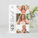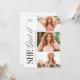Simple she did it graduation announcement and invitation features elegant typography design with timeless serif font and classic calligraphy, 3 photos on the right, additional grad party information and photo on the back, modern and classic.
