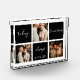 This simple and elegant photo block has room to feature three of your very own special wedding day photos along side the sweet words "today tomorrow always" and your special wedding date. Non photo blocks are a classy white and black.