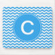 elegant, trendy, bright sky blue chevron monogram mouse mat