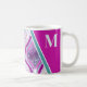 Girly Elegant Teal Fuchsia Agate Monogram Initial Coffee Mug. Crystals and geodes continue to be a favourite trend! This print features and up close image of a vibrant turquoise and purple (magenta) geode stone, complete with little crystals. Add your initial to make it your own.