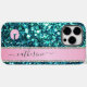 Elegant Trendy Teal Strip Glitter Monogrammed Name Case-Mate iPhone Case