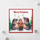 Elegant Trendy Watercolor Pine Trees Caroling Holiday Card
