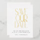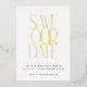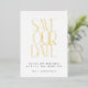 Elegant Mid Century Modern Save the Date with Black and Gold Foil Typography on a White Background