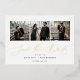 Announce your wedding date with these elegant save the date cards featuring three square engagement photos aligned side by side. "Save the Date" appears beneath in real gold foil classic calligraphy script, along with your wedding date, names, and wedding location. Add additional details to the back if desired.
