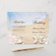 Ideal for a tropical beach wedding, this folded program card by Mylini Design is fully customisable to suit your needs. The beautiful card features a tropical beach scene complete with crystal-clear waters. With ample space for your wedding program, the card provides a handy information guide for your guests. The foldable design adds an elegant and sophisticated touch to your big day. Whether you’re planning a small or large beach wedding, you cannot go wrong with this stunning tropical beach wedding program card.