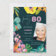 Elegant Tropical Floral 80th Birthday Party Photo Invitation