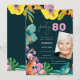 This stylish 80th birthday party invitation features tropical flowers, elegant botanical elements and a sophisticated dark background. Perfect for a summer milestone celebration, tropical birthday party or elegant evening gathering. Original artwork by Caroline Bonne Müller