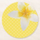 NewparkLane - Elegant Paper Coasters, with a stylish, minimal white trellis / grid pattern, against a yellow background and a Hawaiian tropical flower. A sophisticated design f.i. for your summer wedding or a Easter Brunch.