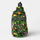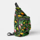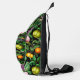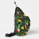 Elegant tropical fruits black pattern monogram sling bag