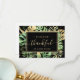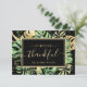 This modern tropical thank you card features green and gold palm, philodendron, and fern leaves on a black background. An elegant gold frame highlights the gold text. Gold splatters accentuate this exotic botanical design and brings a bit of sophisticated whimsy to the invitation. The back can have a custom message printed on every card or can be left blank to allow for a handwritten message by the bride and groom.