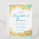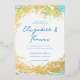 A beach wedding invitation template that features a painted, expressive, watercolor abstract background of a big surfer wave in tropical blue with real gold foil and modern calligraphy for the names. Classy and elegant, simple and modern, it is a lovely choice for a summer destination wedding, an elopement wedding or a beach wedding, a beach front wedding, a surfer wedding or a surf inspired wedding.