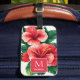 Elegant Tropical Hawaii Hibiscus Red Monogram Luggage Tag