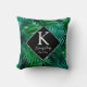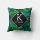 Elegant Tropical Leaves Family Name Beach House Cushion