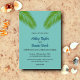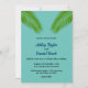 This elegant beach wedding invitation is perfect for a modern summer seaside wedding. The romantic design features green palm leaves with elegant black typography on a teal background.