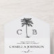 This minimalist black and white wedding invitation is a perfect choice for a modern classic wedding, a simple formal wedding, or an elegant botanical garden wedding with a tropical ambiance. The wedding ceremony is elegant and sophisticated, but at the same time, simple and with a rustic touch. It features your monogrammed initials and a beautiful illustration of a tropical palm tree on the top. Your event details are shown below in a mix of modern script and classic font. You can easily customize this template by clicking on the ´´ Personalize this template´´ button and writing your own details. You can also customize the background color and RSVP message by clicking the ´´Edit using design tool´´ button. The all-in-one wedding invitation comes with an RSVP card, your return address, and your wedding stamper.