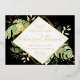 This elegant tropical rehearsal dinner invitation features exotic foliage with gold accents on a black background. A modern geometric gold foil frame highlights the gold foiled text. Gold foil splatters accentuate the botanical design and brings a bit of sophisticated whimsy to the invitation. This island oasis invite is perfect for any outdoor, beach or destination wedding.