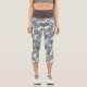 Elegant Tropical Teal Blue Palm Tree Leaves Summer Capri Leggings