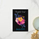 Thank your guests for sharing in your big day with this vibrant and elegant design. Set against a dark background to showcase the vibrancy of the floral design. All fonts and wording can be customised. Background and font colours can also be customised. Back of card is left blank for handwritten sentiments.