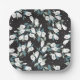 Elegant Tulip Flower Pattern Black Background Paper Plate