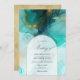 Elegant Turquoise and Gold Flowing Ink Wedding Invitation