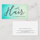 Elegant customisable business card template with black scissors icon /texture turquoise background and handwriting text. Modern design, perfect for hair stylist, hairdresser.