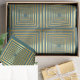 Decorative, elegant and glamourous light teal blue and gold tissue paper featuring shiny gold squares intricately linked to produce a captivating 3D illusion.