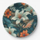 Elegant Turquoise Orange Flower Pattern Floral Paper Plate