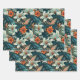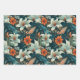 Elegant Turquoise Orange Flower Pattern Floral Wrapping Paper Sheet