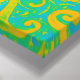 This elegant peacock canvas art will brighten up your home décor with the bird in colours of turquoise and blue on a yellow patterned background. Image generated with AI.
