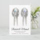 Elegant and chic gay men wedding invitation with two grey tuxedo watercolors with teal blue and purple accents and your first names in a stylish script. On the reverse side, add all of your wedding details in modern typography.