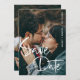 Announce your upcoming wedding in style with our Elegant Two-Photo Modern Chic Wedding Save the Date. This sophisticated design features two of your favourite photos, clean lines, and crisp white text in a vertical orientation, creating a unique and stylish look. The background photo beautifully showcases your love story, making this save the date a perfect keepsake for your guests.