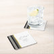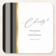 Elegant Typography Black White Gold Stripe Wedding Square Paper Coaster