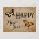 Elegant Typography Butterfly Stars Rustic New Year Holiday Postcard