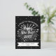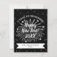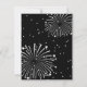 Elegant typography Happy New Year 2024 family card. Black and white fireworks design with snow fall. Beautiful Holiday card with personalised name and custom date. Upload your own photo on the back optionally.