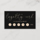 Simple jet black background with gold elegant typography script "loyalty card" and custom text in sans serif font. There is a beautiful contrast between black background and golden accents. All business information is in elegant serif font and minimalist layout on the back