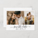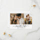 Elegant Modern Minimalist Typography Script 2 Photo Collage Save The Date Cards in black and white. This romantic delicate design perfect for modern wedding. Features 2 grid photo collage, a whimsical calligraphy in hand lettered style swash tail font calligraphy or typography script and a love heart. Easy to personalise it with your wedding details and pictures.