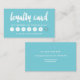 A modern, stylish loyalty card for hair and makeup artist business card with modern hand lettering style brush typography in white on a trendy customisable robbin egg blue background. If you need any customisation, don't hesitate in contacting me