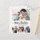 Elegant, Modern Black and White 4 Photo Collage Merry Christmas Script Holiday Postcard. TThis festive, mimimalist, whimsical four (4) photo holiday card template features a pretty photo collage, some snowflake and says Merry Christmas! The „Merry Christmas” greeting text is written in a beautiful black hand lettered typography font type on white colour background. Pretty greeting postcard for your family and friends in this Christmas and Holiday season.