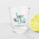 Looking for a unique way to let your family and friends know about the date of your wedding. Save the Date shot glasses feature typography script ''save the date'' in bold teal lettering, personalise with names , date & location.