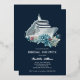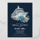 Elegant and unique cruise ship trip bridal shower with real silver foil invitation. Personalise it with the future bride's name and the party details including the dates, cruise line, departure port, RSVP information for your bridesmaids. The design features a beautiful watercolor boat and beautiful flowers on a navy blue background.