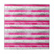 Elegant Valentine Pink Silver Hearts on Striped Tile