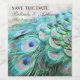 Elegant Vibrant Teal Peacock Feather Save the Date Wine Label