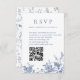 Elegant Victorian Blue Floral Wedding QR code RSVP Card