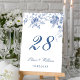 Elegant Victorian Blue French Floral Wedding Table Number