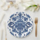 Elegant Victorian Damask Flower Pattern Navy Blue Paper Plate