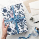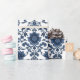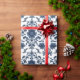 Elegant Victorian Damask Flower Pattern Navy Blue Wrapping Paper