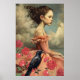 Elegant Victorian Gothic Girl Floral & Raven Poster