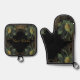 Elegant victorian moody dark green gold botanical oven mitt & pot holder set
