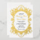 An antique ornate frame in gold with vintage formal serif and calligraphy fonts for a traditional elegant wedding design.